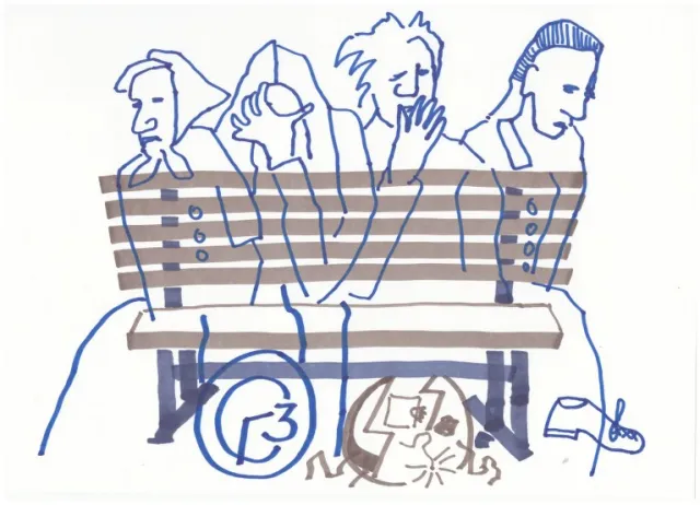 sagte er und sah sie alle der Reihe nach an, die auf der Bank in der Sonne saßen.